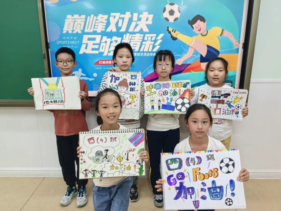 活动预热阶段,学校大力渲染足球文化氛围,美术组老师与同学们一起用优美的线条与色彩勾勒出一幅幅美丽的画卷,一张张足球赛的宣传海报张贴在校园中,点燃了大家的热情。
