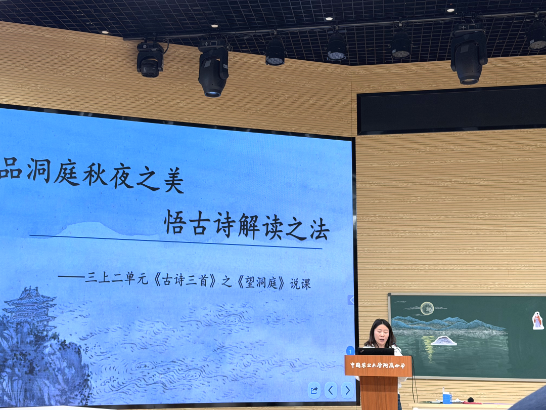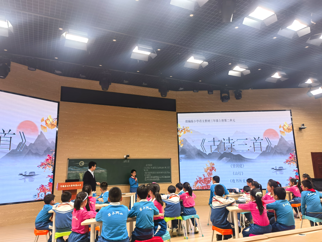 金秋送爽,诗意盈庭。近日,中国农业大学附属小学“人工智能赋能自主课堂的实践与探索”中年级语文主题活动于多功能厅温情启幕。三(1)班的孩子们与全校老师齐聚一堂,以古诗《望洞庭》为纽带,开启了一场交织古典诗韵与现代科技的教学实践之旅。活动依照课堂展示、说课解析、反思分享三大环节有序推进,让千年洞庭的月色在智能时代的课堂中焕发新生。