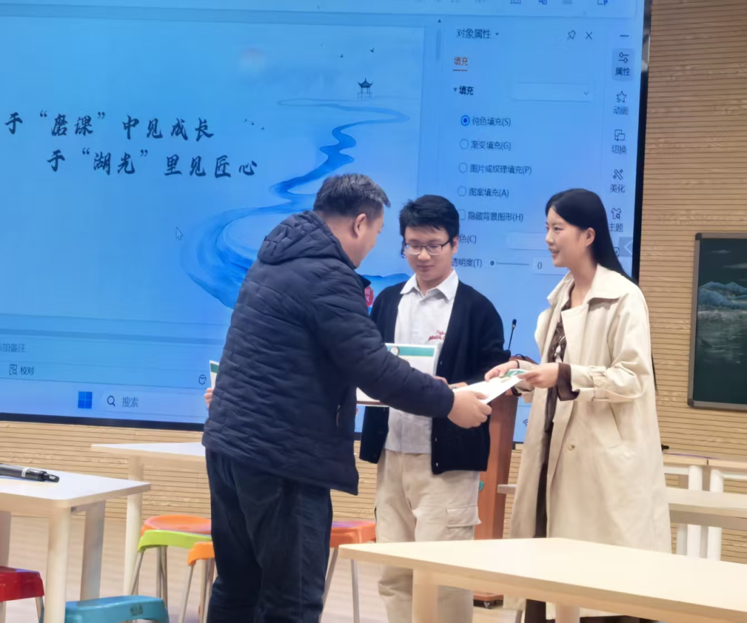 活动尾声,赵校长为金宏杰、牛思佳、高明三位参与展示的老师颁发荣誉证书,并予以充分肯定。