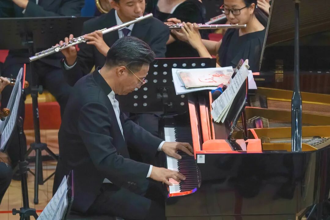 作为这堂音乐思政课的终章,管弦乐《我的祖国》将全场情感推向高潮。当“一条大河波浪宽”的熟悉旋律徐徐展开,温暖而深情的旋律仿佛一幅流动的家国画卷。各声部通过丰富的交响语言赋予了这首经典更厚重的层次与张力,交织成震撼人心的时代共鸣。余韵悠长中,完成了对山河之爱、文化之根与时代之责最深情的诠释,也为这堂特别的思政课,画上了一个饱满而有力的句点。