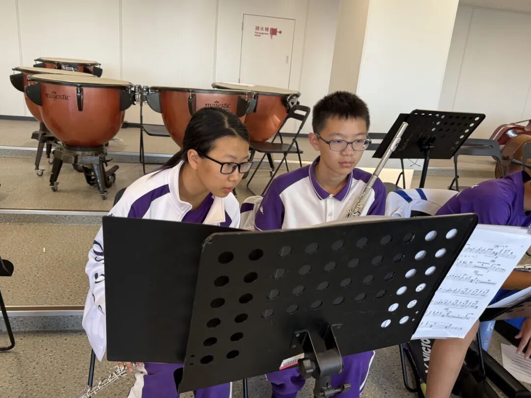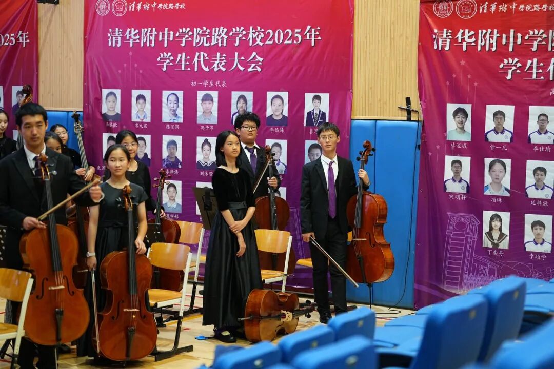 作为清华附中教育集团成员校,清华附中学院路学校积极融入集团美育共建体系。在此次音乐思政课中,共有19名清学学子入选管弦乐团演出阵容,在弦乐、管乐、打击乐等多个声部承担重要演奏任务。他们利用课余时间去清华附中本部参与集中排练,在专家与老师的悉心指导下反复打磨技艺、锤炼默契,从分声部精雕细琢到全团合成演练,每一步都记录着他们的努力与成长。