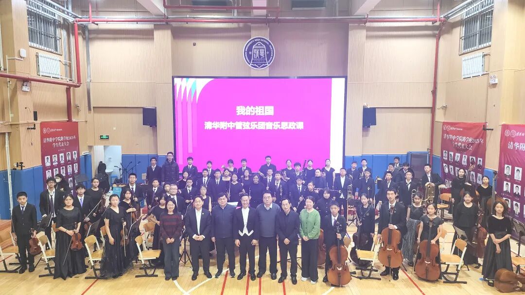 清华附中管弦乐团成立于2022年10月,虽是一支年轻的队伍,却已展现出蓬勃的生机与卓越的成长力:2023年荣获国民音乐教育大会“西洋管弦乐组”展演“卓越演奏奖”;2024年在海淀区学生艺术节中荣获小型器乐合奏展演中学组金奖;王金峰老师也多次荣获校园乐器成果与指挥方面的奖项。此次音乐思政课的成功举办,是乐团发展路上的又一次精彩亮相,更是清华附中教育集团坚持“五育并举”、推动艺术教育与思想政治教育深度融合的生动实践。