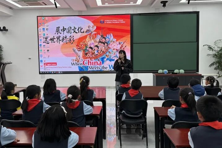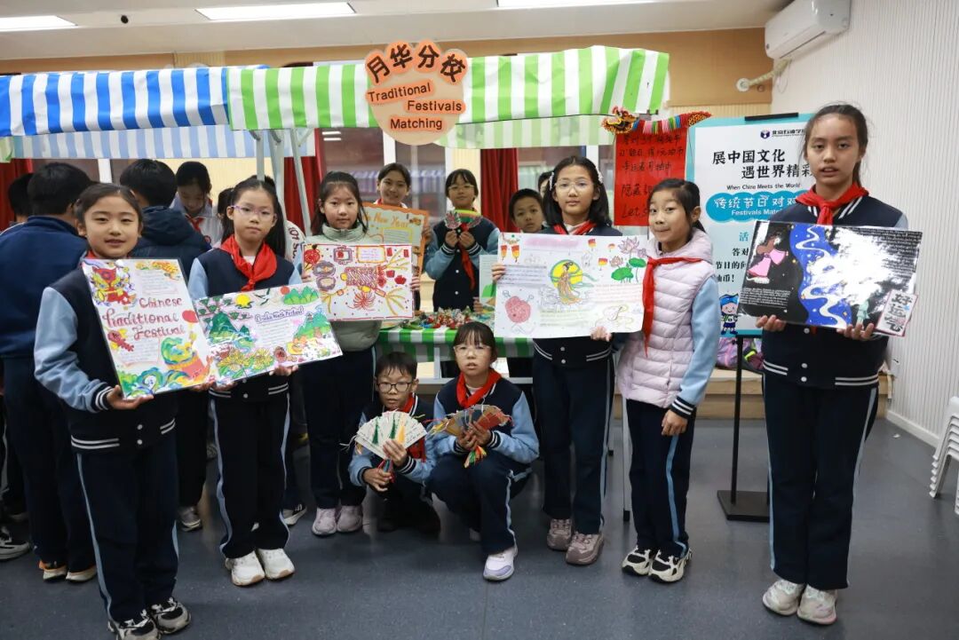 这一天,校园变身活力满满的文化交流乐园,舞台展演与互动体验同步开启。舞台上,各年级学子轮番登场,用流利英语演绎中国故事:低年级音乐剧活泼灵动,传递传统美德;传统服饰秀上,孩子们身着汉服、唐装自信走秀,英文童谣与服饰文化相得益彰;中年级短剧串联神话传说,英语朗诵歌颂山河之美;高年级创意融合节目引发全场共鸣,以“少年强则国强”齐诵推向高潮,颁奖环节为孩子们的创意送上真挚肯定。