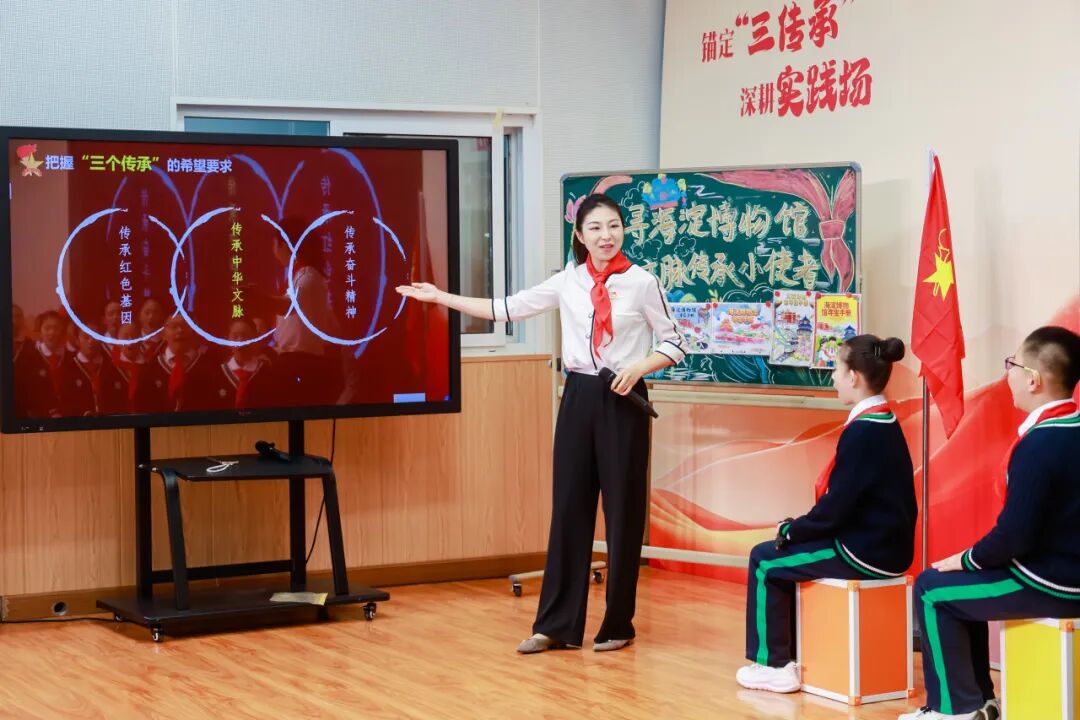 本节队会以海淀博物馆为研学实践起点,队员们化身“小小讲解员”,通过分享文物故事、解读文化内涵,深入挖掘文物背后的历史与价值,理解自己作为少先队员所承担的文化传承责任。队会还特邀首都师范大学历史学院闫志教授,为队员们讲述博物馆建馆背后的故事,并为红领巾博物馆的筹建提供了宝贵建议。