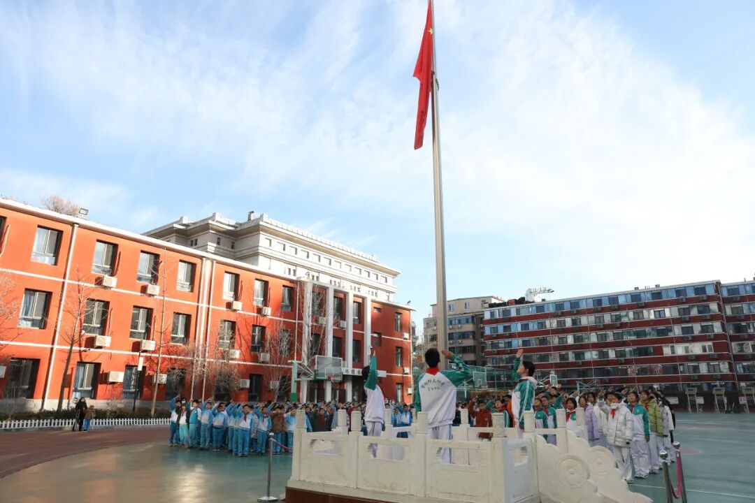 清晨微光中,五星红旗徐徐升起。全体师生肃立凝视,国歌声声,穿透寒晨,激荡在每一颗炽热的心中。
