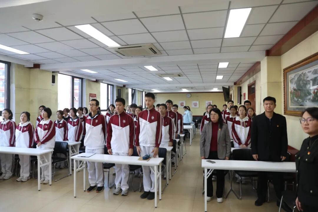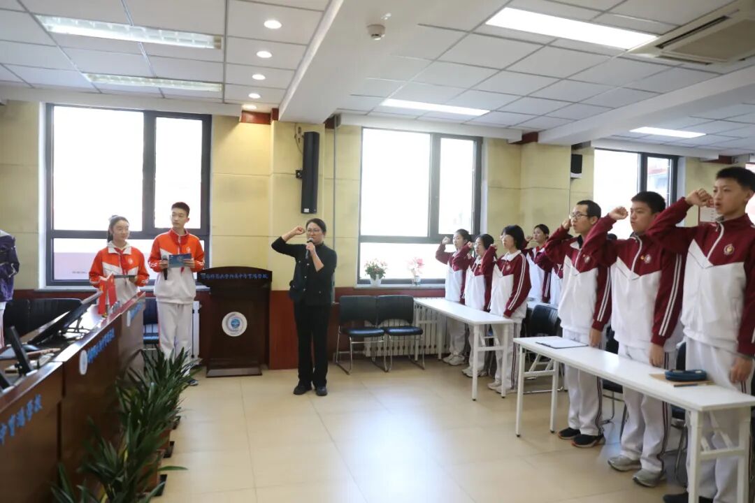 在团委书记的带领下,新团员面向团旗,举起右拳。誓言铮铮,如击鼓传声,是对组织的承诺,更是对历史的回应。