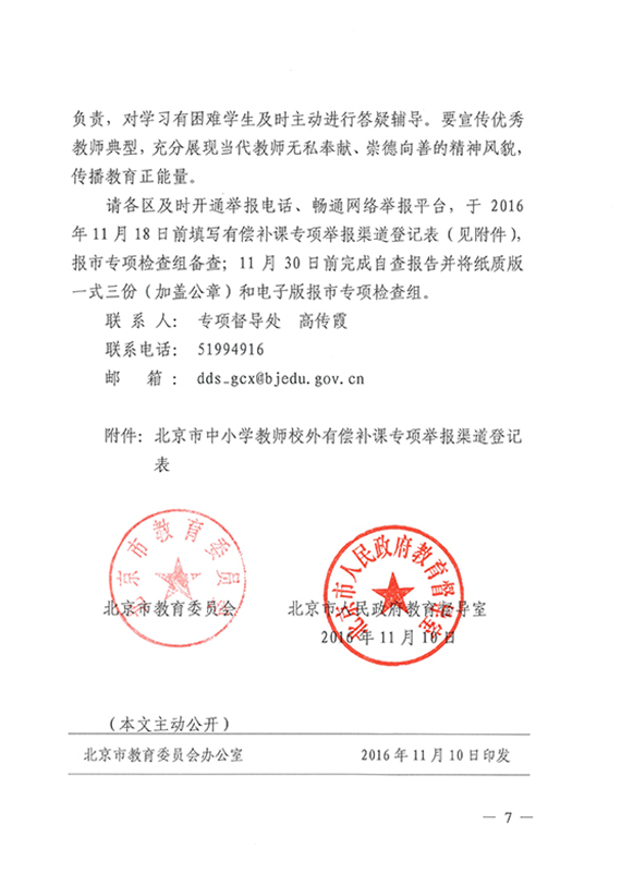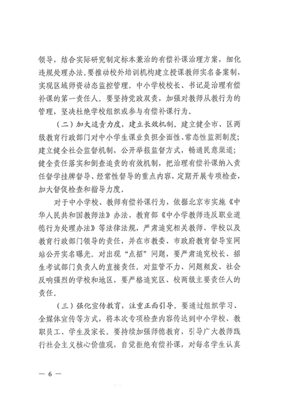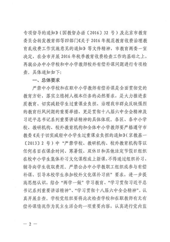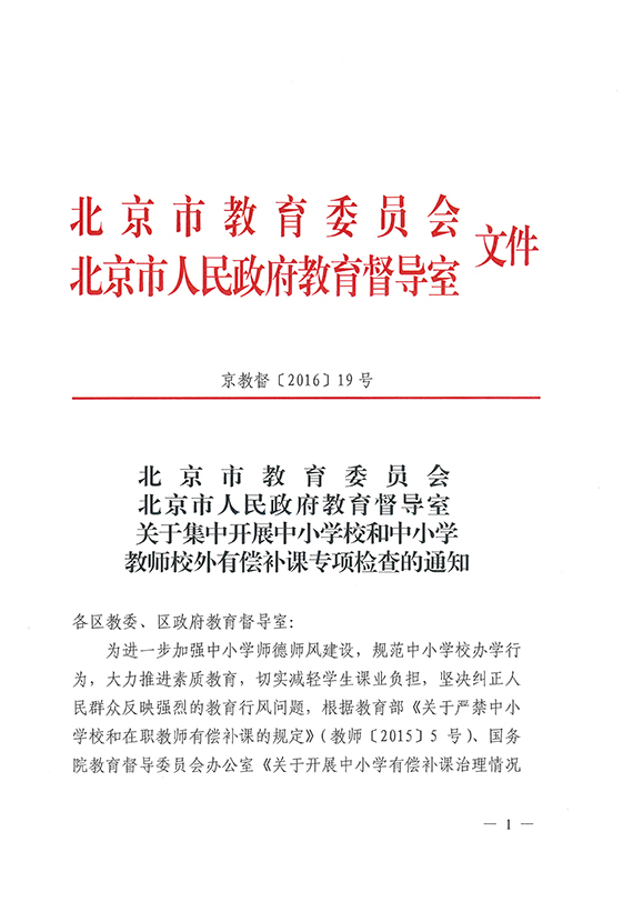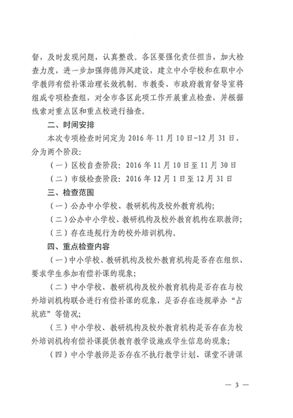 【市教委】关于集中开展北京市中小学校和中小学教师校外有偿补课专项检查的通知