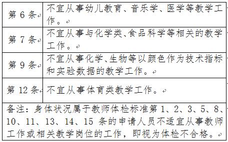 2.体检标准按照《北京市教师资格认定体格检查标准(试行)》文件执行(见下表):