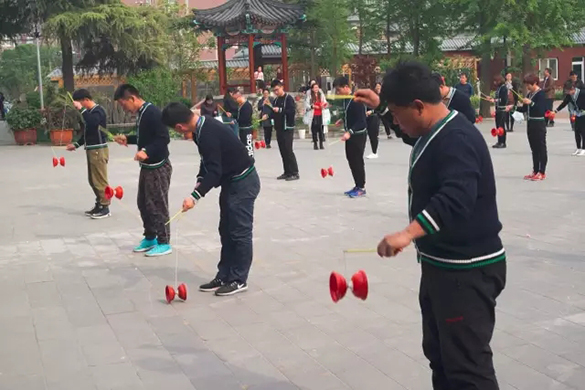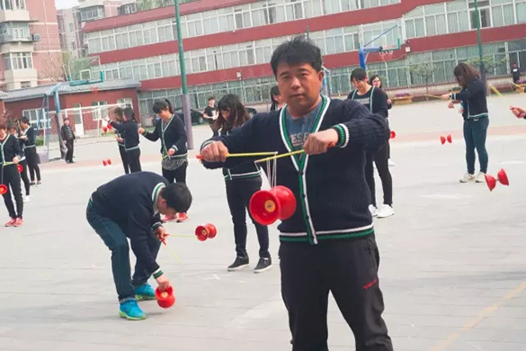 抖空竹在中国文化渊源中既古老又新鲜,是中国传统文化苑中一株灿烂的花朵。抖空竹不受场地限制,是集娱乐性、游戏性、健身性、竞技性、表演性于一身的中国国粹精品,是深得人民大众喜爱的一种全身运动项目,对四肢、躯干、头、颈都有锻炼作用,特别是对预防肩周炎等教师职业病有很多好处。