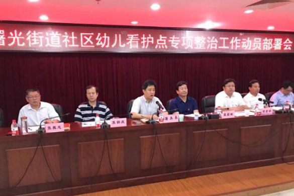 8月23日,曙光街道街道召开未经注册社区幼儿看护点专项整治工作动员部署会。曙光街道领导高度重视此项工作,街道党工委书记冀国瑞、办事处主任胡宏宇及街道领导班子成员、地区职能部门、社区相关负责人出席了会议。区教委副主任屠永永及社会力量办学管理科科长左滨参加了动员部署会。