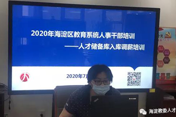 根据疫情防控要求,培训采取线上模式,以视频会议形式,主会场设在人才中心会议室,依托海淀区教育系统云课堂直播平台,通过在线直播、实时互动等环节,对有人才库教师用人单位的百余名人事干部进行了培训。