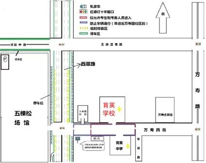 4.育英中学考点位于海淀区万寿路西街14号,请考生沿指定线路,按照指示从学校北门进入考场。