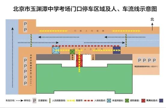 6.北京市育英学校考点考生专用通道范围请参看示意图,请家长一人接送考生,即停即走。考生可在入口处下车,步行通过专用通道进入考点校。请家长及考生遵守学校标识,配合现场工作人员的引导与指挥。