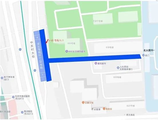8. 确保考生“平安高考、健康高考、温馨高考”,北大附中考点校已经设立考生专用通道。北大附中考点校考生专用通道范围为:海淀区中国科学院黄庄小区西门过街天桥下(路东侧)到北大附中考场楼;请家长一人接送考生,即停即走,考生可在必胜客(希望店)门口下车,单独进入专用通道。考试期间送考家长不得在考点门口、周边聚集。