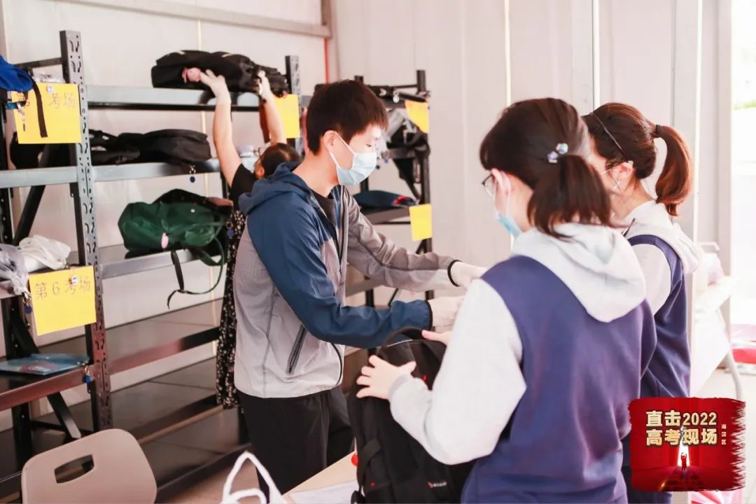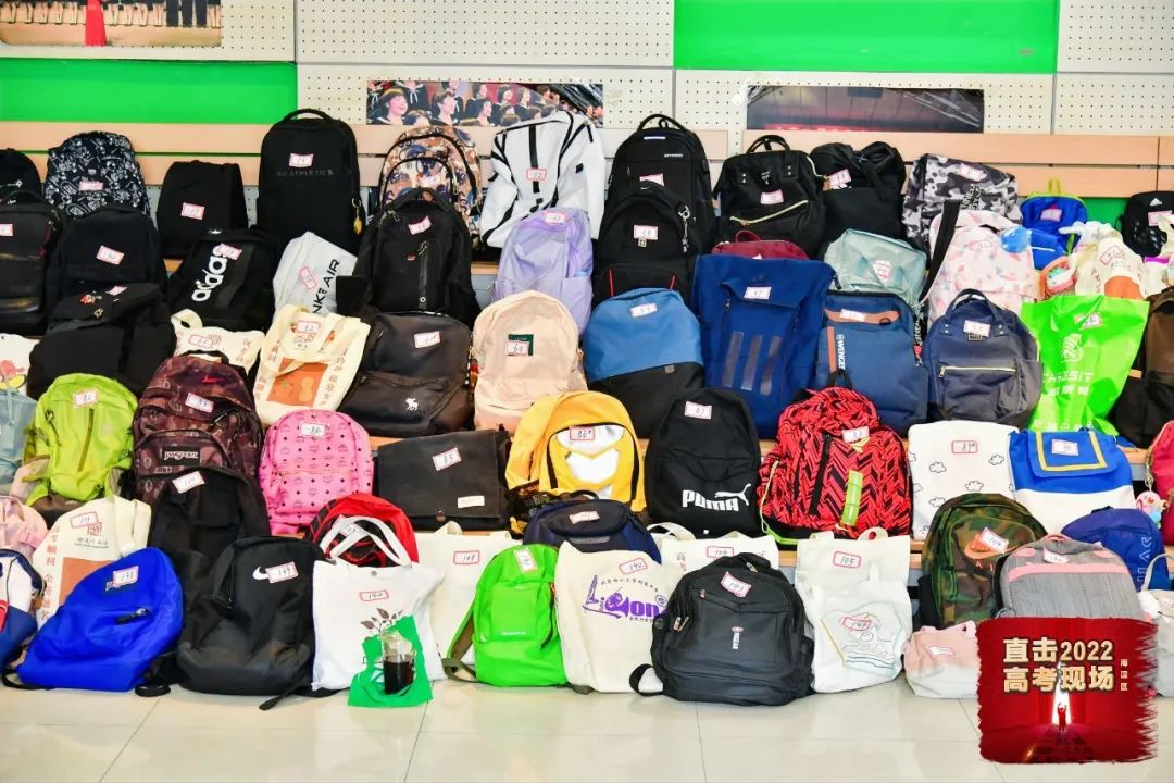 今年是育英中学新校址自建成以来首次作为高考考点。为了给考生创设安全温馨的考点环境,学校各部门用心思考、精心布置,从入校门到考试区的一路都搭建了雨廊;考虑到疫情防控的要求,考场外的存包处是以考场来区分摆放的;学生存完书包后,可以按照不同的通道,直接进入相对应的考试区。