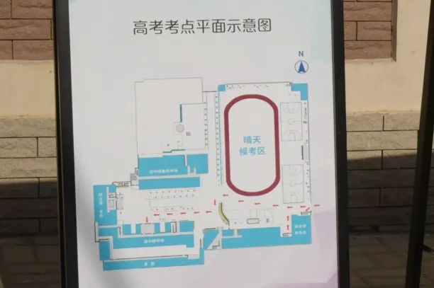 为了助力学生迎战高考,学校在校内安装了红色遮阳棚,寓意“鸿运当头”“金榜题名”;校内考场分布图及指示牌明确、规范,激励、鼓舞的话语也被张贴在校园里的醒目位置;为同学们贴心开放的存包处井然有序;主考场以及备用考场也都配备了完善的消杀物资。一切都为护航考试做足精准安排。