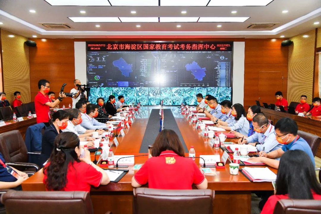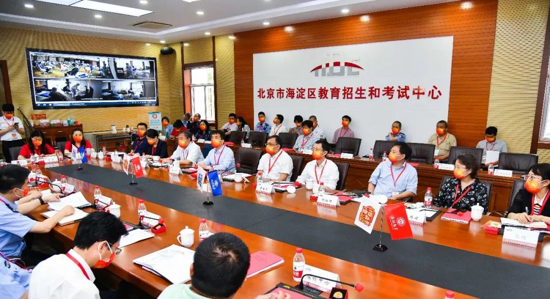 上午8点,在海淀区教育招生和考试中心,来自区委区政府和区委教工委、区教委、区公安分局、交通支队、卫健委、住建委、城管执法局、疾控中心、供电公司、中关村街道等部门的负责人员,通过海淀区国家教育考试综合管理平台检查各考点校的准备工作情况。