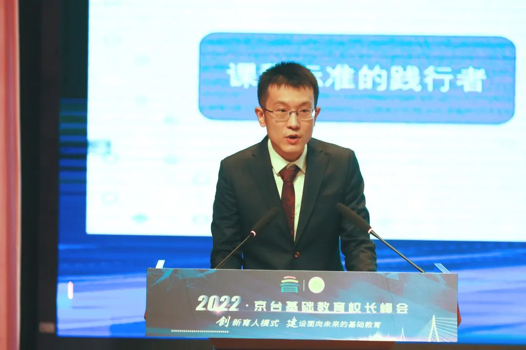 围绕提高学生的科技素养、人工智能应用等课题,北京市十一学校教师代表、高雄市小学教师代表分别以《教师是推动人类文明进步的第一责任人》《新时代‧新教具‧新教师》为题进行了交流发言。