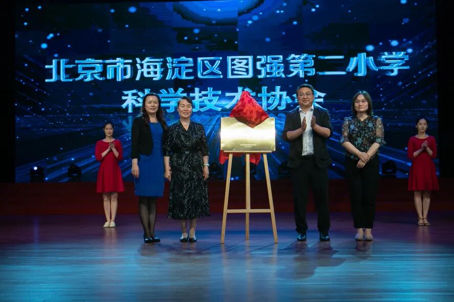 活动现场,北京科学中心副主任刘然、海淀区科协副主席刘传、海淀区教委美育和校外教育科科长张少莉和黄学英校长共同为图强二小科学技术协会揭牌,并希望图强二小科协发挥组织优势,激发学生科学精神和创新活力,指导学生开展科学实践活动,提升学生科技素质,培养科学后备力量,积极促进科技资源的开放共享,推动海淀区科学技术普及,为提升全民科学素质服务。