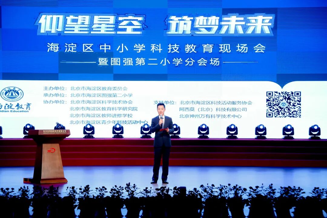 为展示图强二小科技教育成果,提升全区中小学科技创新教育水平,6月20日,以“仰望星空 筑梦未来”为主题的海淀区中小学科技教育现场会暨图强第二小学分会场在航天二院礼堂召开。活动现场还同步举行了更名仪式,图强二小正式更名为“北京市海淀区航天图强小学”。
