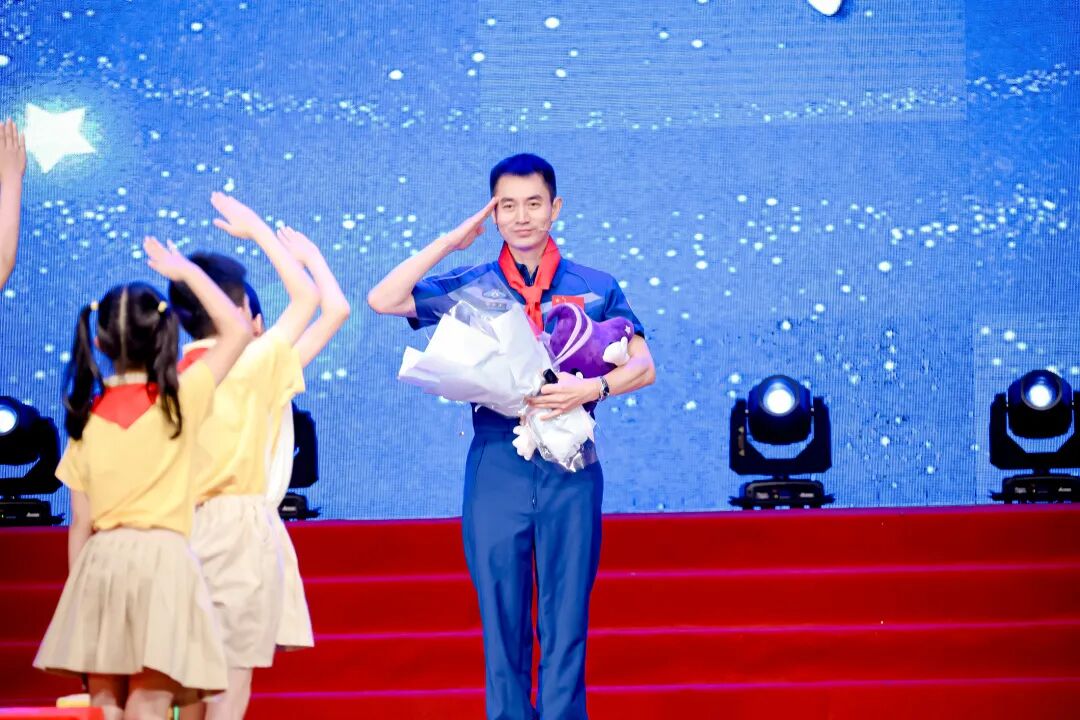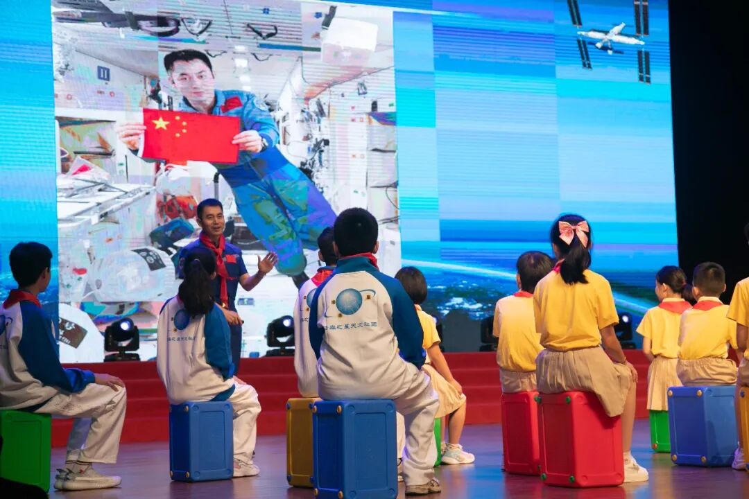 学校还邀请到英雄航天员叶光富来到活动现场讲授航天课堂。叶光富从儿时的梦想讲起,分享了如何一步步成长为航天员,最终实现逐梦太空梦想的心路历程,鼓舞孩子们弘扬航天精神,实现报国之志。叶光富还就同学们提出的“空间站里怎么进行垃圾分类”“空间站里怎么获取饮用水”等问题,和师生进行了现场交流。