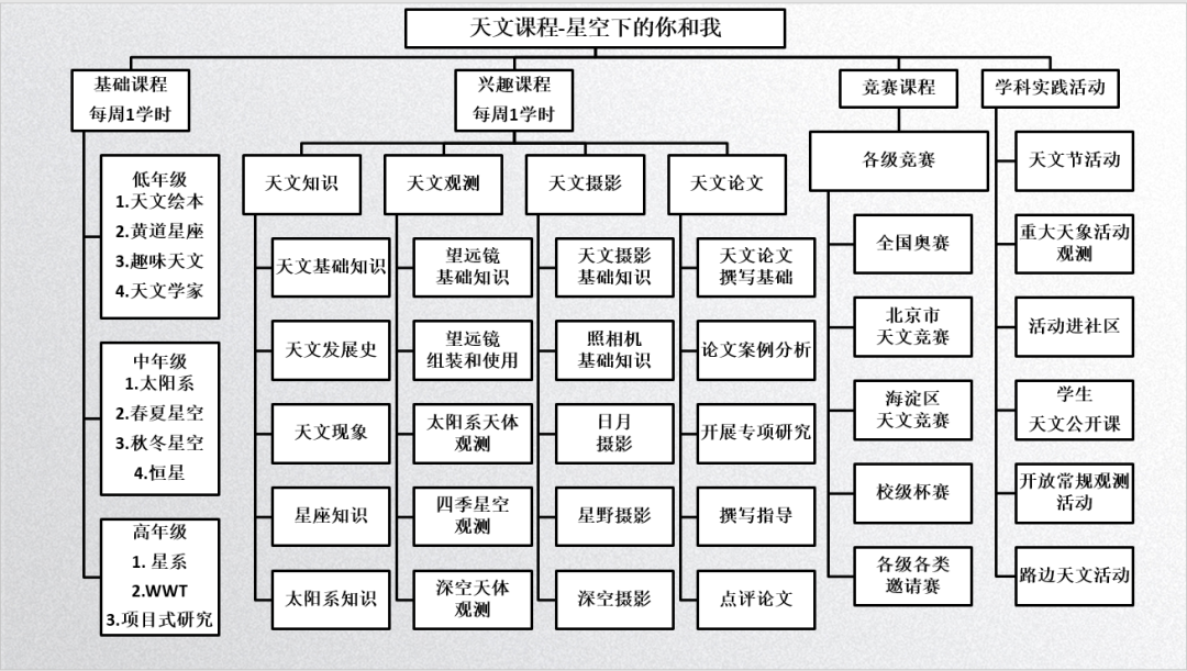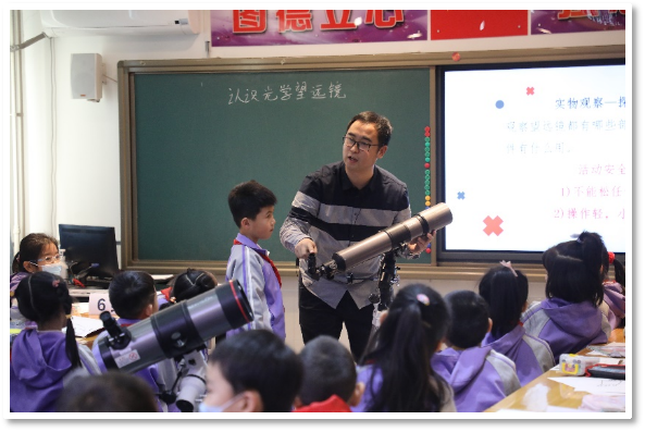 早在二十多年前,学校就基于航天二院科技教育资源优势及家长们的大力支持,开启了天文教育的探索之路。二十多年来,学校的天文教育从兴趣小组1.0时代,逐步发展到精品社团2.0时代,全员天文教育3.0时代,再到如今素养导向的全员天文教育4.0时代。2022年,学校还获评首批“全国天文科普特色校”。