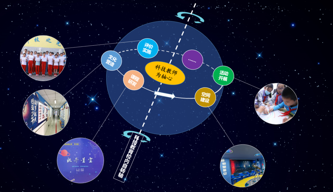 一方面以科技教师为轴心,形成科技教育校内自转轴,科技教师是主力军,班主任和学科教师是支撑,全员协力推进科技教育实施,带动了科技教育一体化运转。