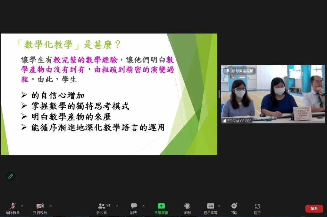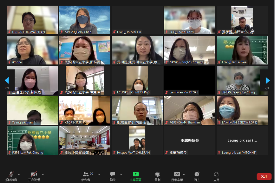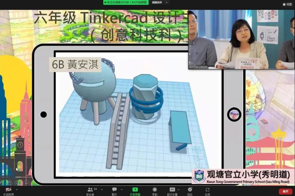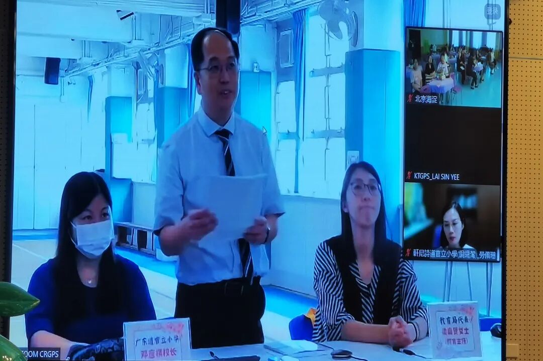 广东道官立小学教师团队、观塘官立小学(秀明道)教师团队、天水围官立小学教师团队分别作了“学习者主导的探究课——正方体展开图”“文化育人•喜动观塘•心系家国——观秀缆车系统跨科课程”“家国情怀系我心:美哉中华”主题报告。