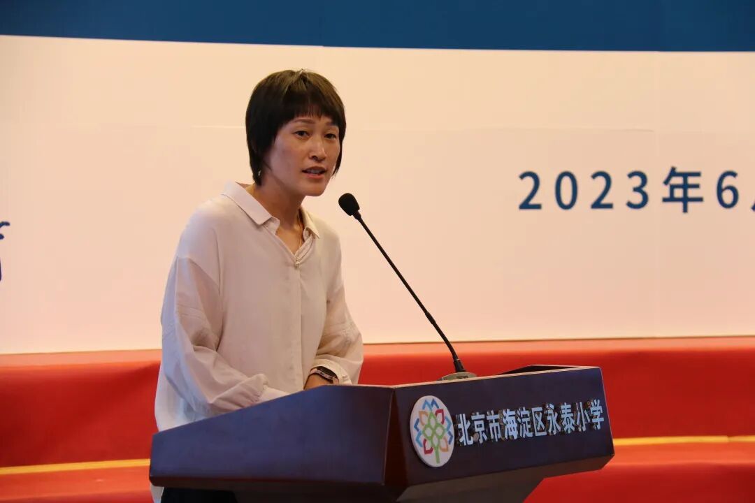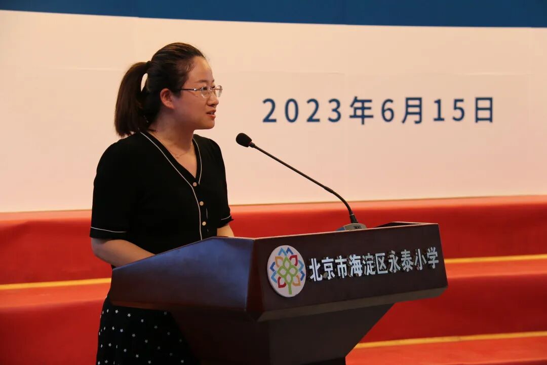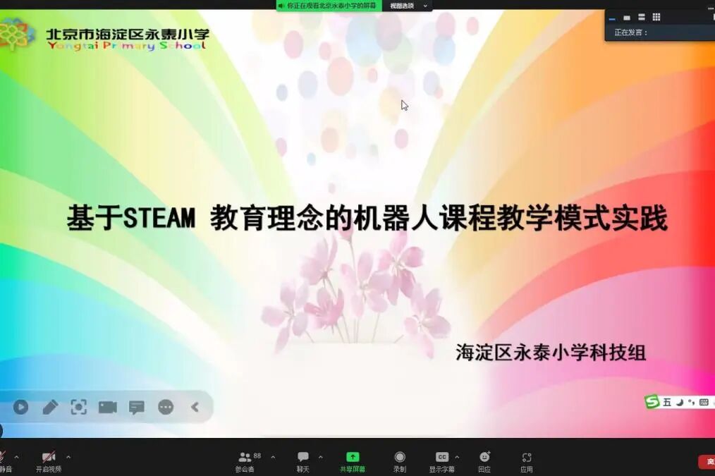 北京石油学院附属实验小学副主任梁颖、北京市海淀区永泰小学科技组、北京市海淀区东北旺中心小学主任郭春洋分别作了主题为“共享速度空间——‘寻找生活中的速度问题’主题活动的实践”“基于STEAM教育理念的机器人课程教学模式实践”“让家国情怀在孩子们心中生根发芽”的分享。