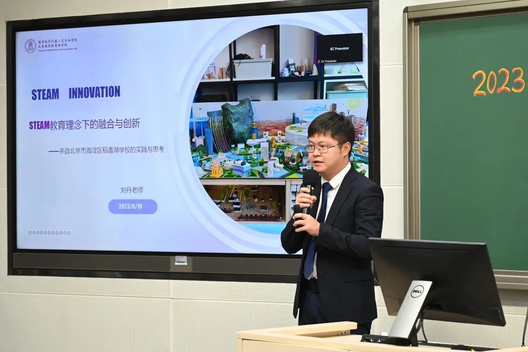北京理工大学附属中学数学组长金永涛、海淀区稻香湖学校STEAM中心主任刘丹、中国人民大学附属中学翠微学校副校长赵志勤分别作了“高中数学特色课程的建设与思考”“STEAM教育理念下的融合与创新”“行走的大思政课——对培养青少年家国情怀的思考”专题发言。