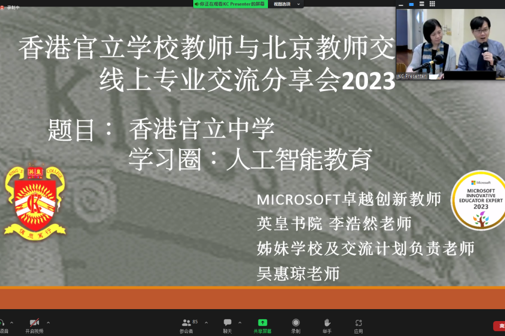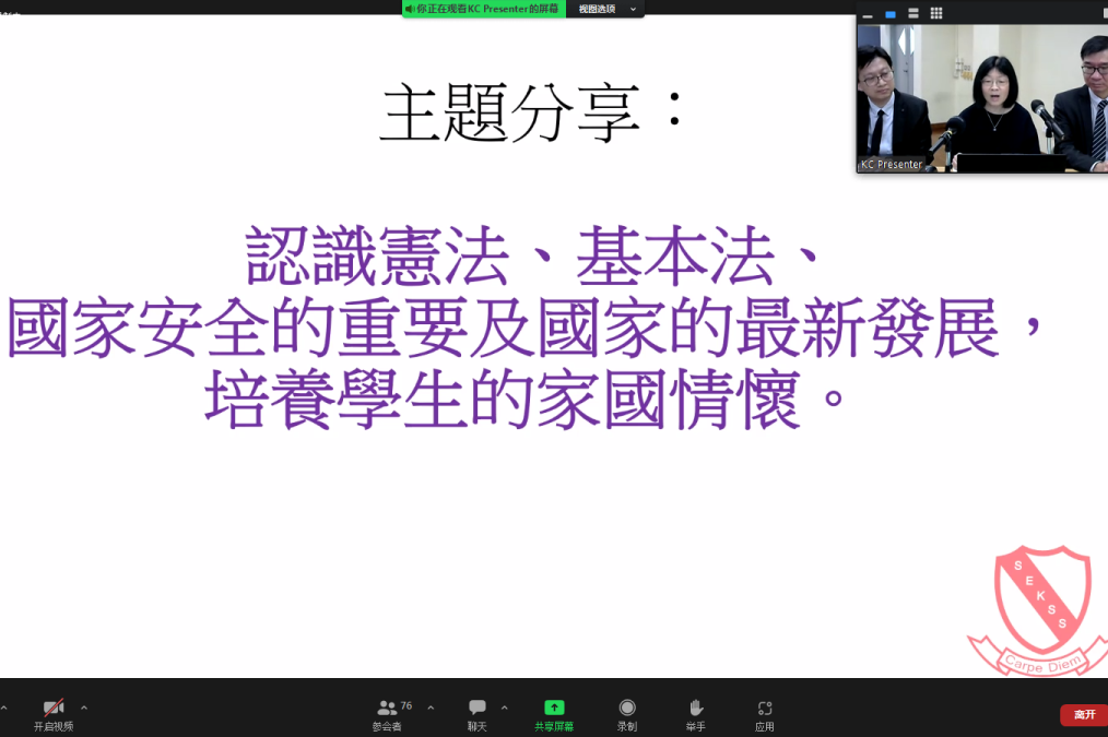 邓肇坚维多利亚官立中学教师团队、英皇书院教师团队、官立嘉道理爵士中学(西九龙)教师团队分享了“官立学校教师学习圈(高中数学延伸部分)”“香港官立学校教师学习圈:人工智能教育”“认识宪法、基本法及国家最新发展,培养学生的家国情怀”的主题报告。