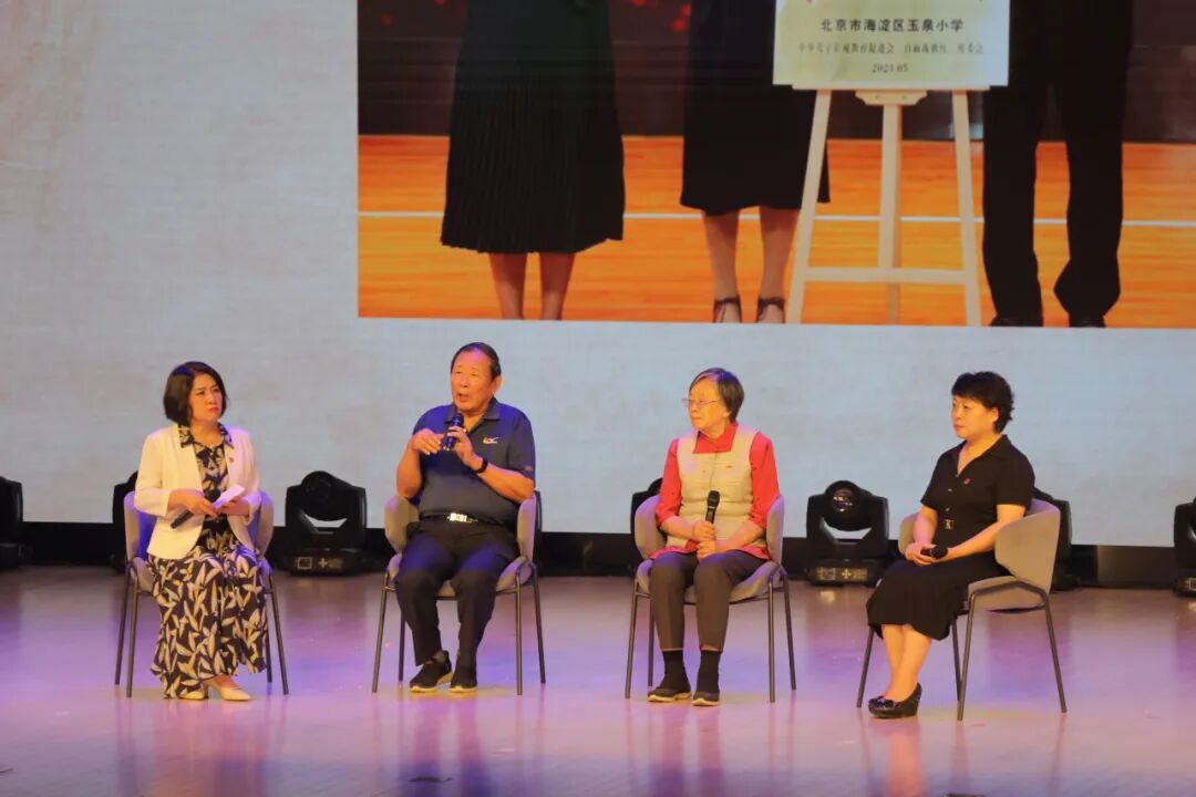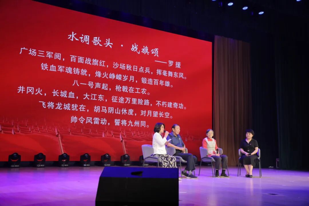 访谈环节,军事科学院世界军事研究部原副部长(《百面战旗红》主创)罗援,中共党史人物研究会井冈红军人物研究分会会员(六一幼儿院校友)刘松柏,海淀区培星小学党总支书记、校长李伟,中国空间技术研究院总工程师(八一学校96级校友)郝燕艳,在区教育党校常务副校长赵欣的主持下倾情对话,讲述历史故事、缅怀革命英雄、弘扬革命精神。