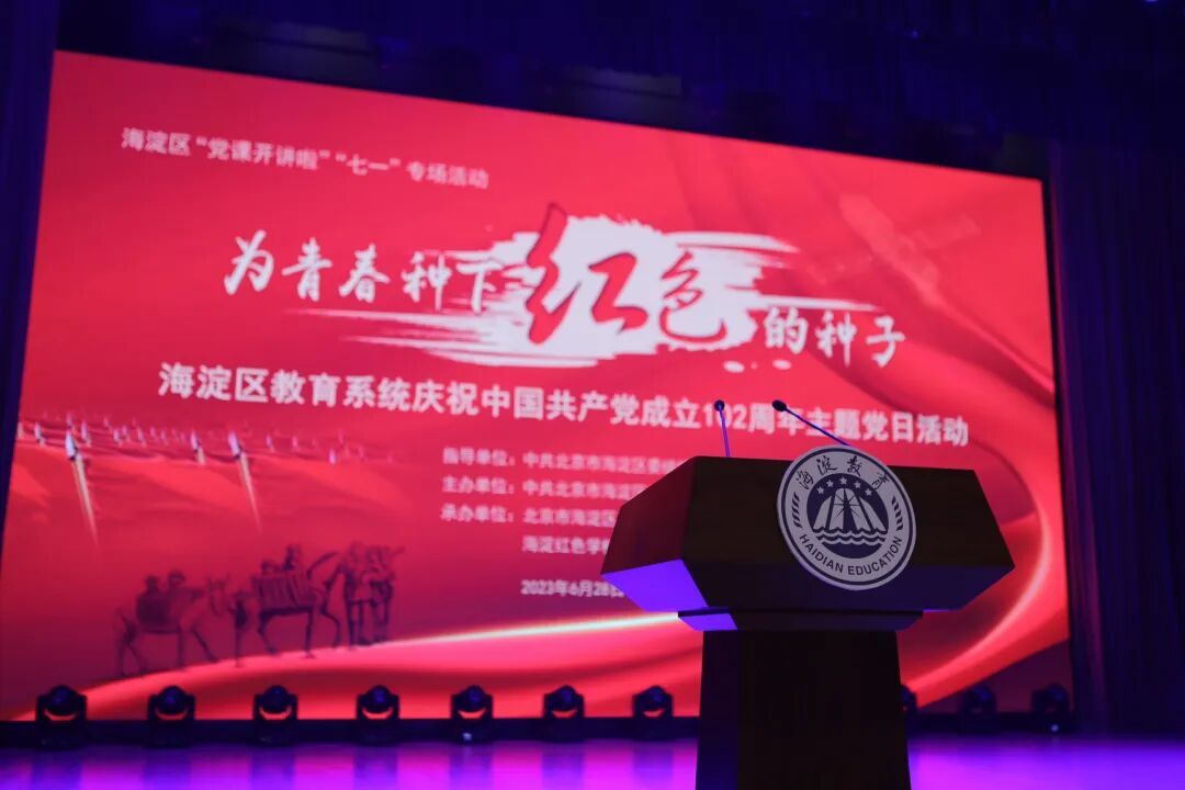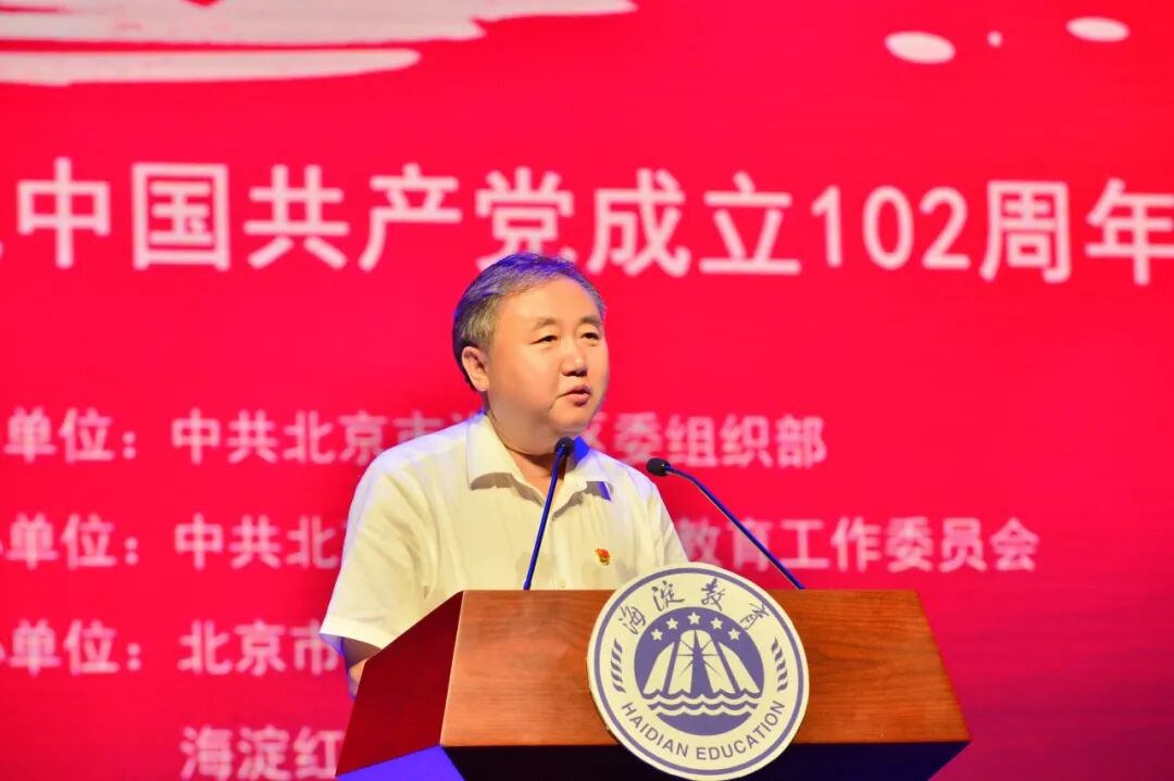 为庆祝中国共产党成立102周年,6月28日,海淀区“党课开讲啦”“七一”专场活动暨海淀区教育系统庆祝中国共产党成立102周年主题党日活动举行。此次活动由海淀区委组织部指导,区委教育工委主办,区教育党校、区红色学校党建联盟承办。海淀区委常委、组织部部长肖丹,海淀区委组织部副部长(正处长级)、区委两新工委书记张东川,以及全区各系统、各街镇有关领导,区教育两委班子成员、科室负责人,区教育系统各单位党政正职、预备党员到场参会,共计600余人参加。本次活动由区委教工委书记王方主持。