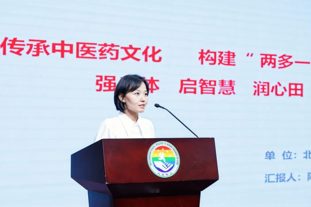 本届文化节的显著特色是各学校充分利用自身资源,结合中医药文化优势,探索形成具有本校特色的中医药文化进校园工作模式、路径。人大附小校长张冬梅、一零一中石油分校校长万锡茂以及北京市盲人学校副校长陈瑜代表海淀区中医药文化进校园学校风采展示单位在开幕式现场分享了本校的工作经验;来自人大附中、北京盲人学校、双榆树第一小学、人大附小、北京市建华实验学校的6位老师作为教师代表进行了风采展示。