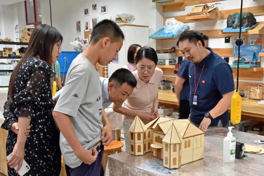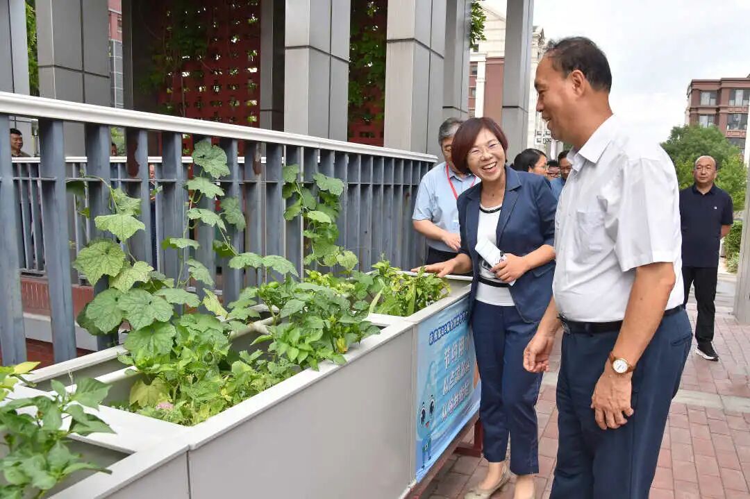 督导一组一行了解学校校园文化及发展轨迹,先后参观了学校操场、生态菜园等,并走进篮球馆、音乐教室、戏剧教室、劳动、科技等专业教室,了解同学们的学习情况。同学们在老师的指导下专心实践、动手动脑,锻炼和提高综合能力。督导一组一行还与学校就教育理念、集团校办学特点等进行交流。