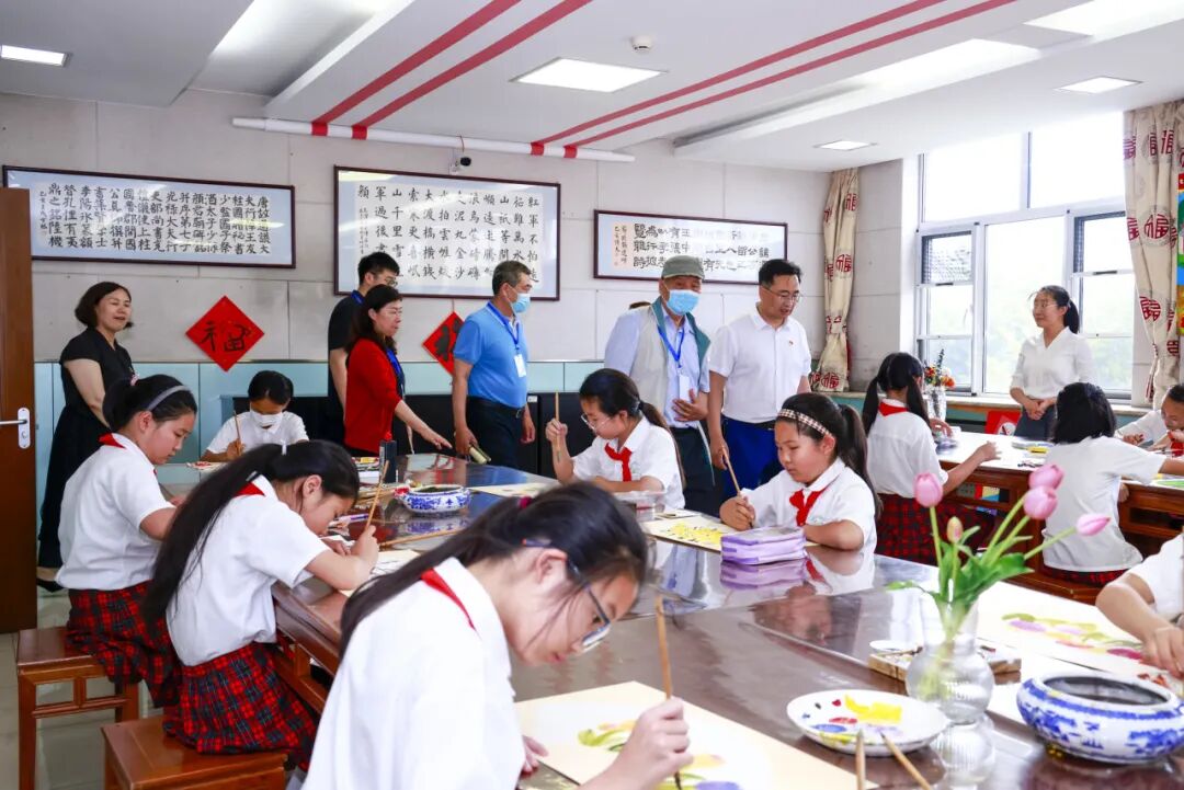督导二组参观了校园环境、少年先锋岗,与少年先锋岗的少先队员进行亲切交流。学生们为嘉宾们讲解校园文化,学校教师为领导们介绍校园环境及专业教室使用情况。