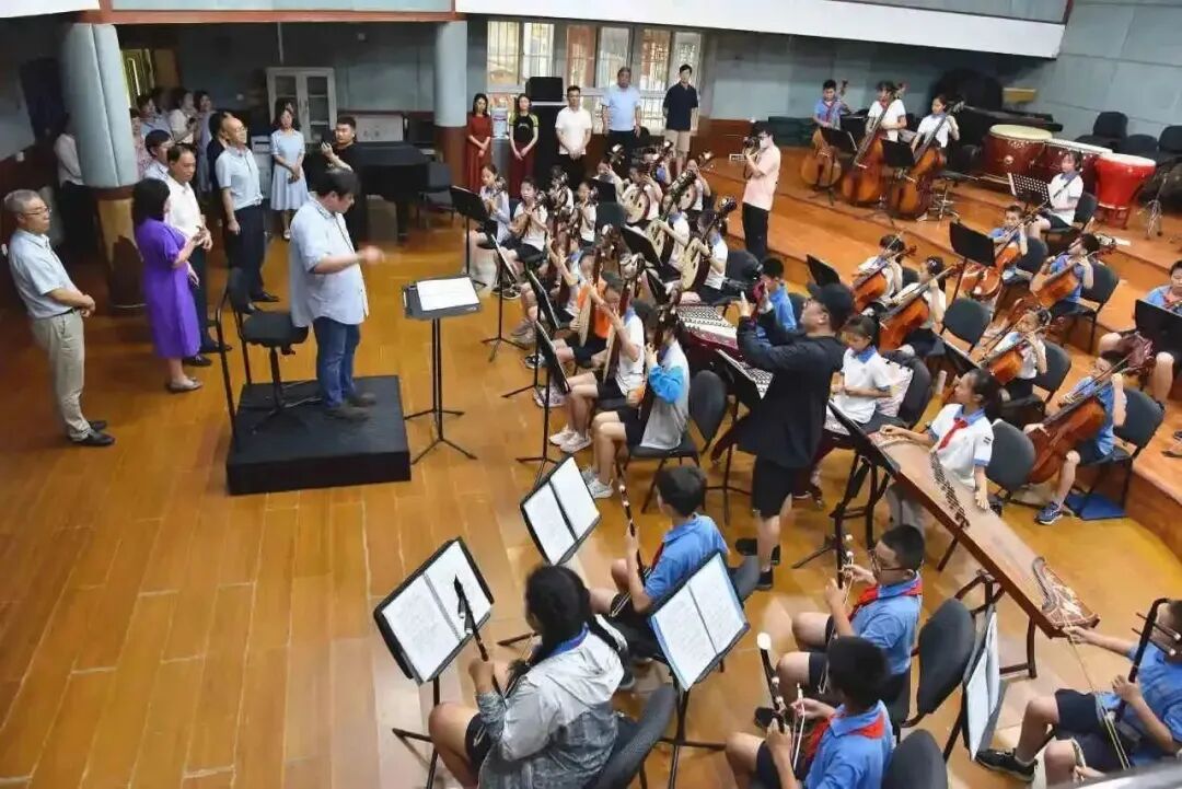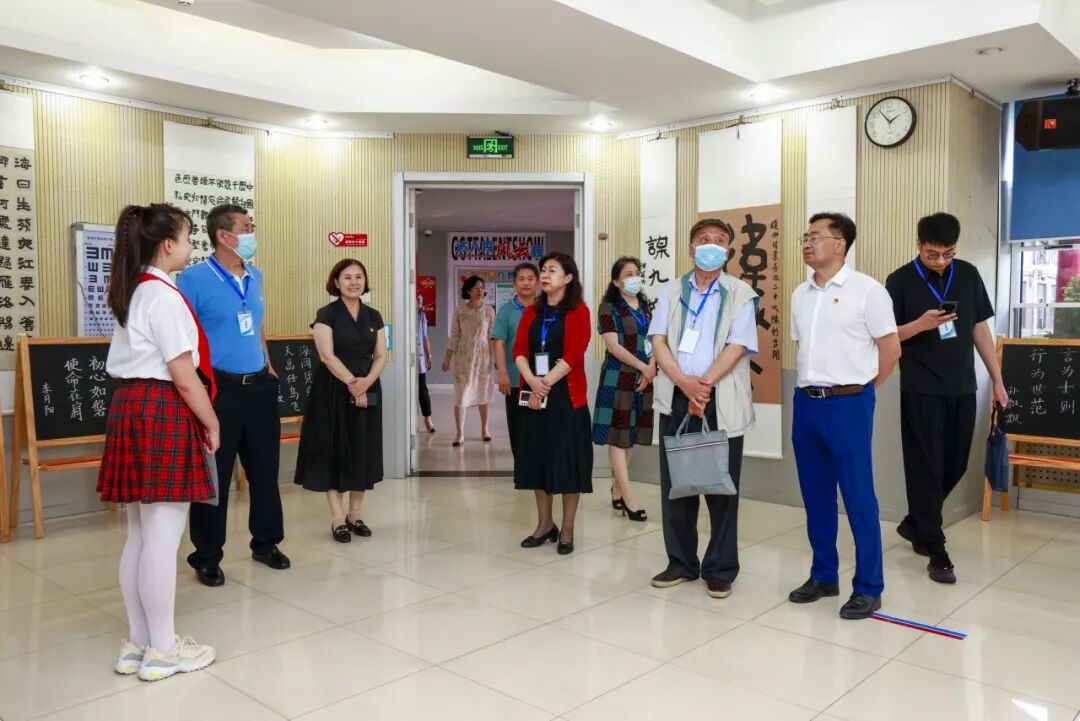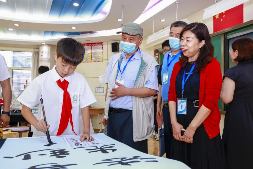 督导一组一行先后来到书香菜园 、生态阅览室、风雨操场,美术、科技专业教室等,了解学校劳动教育、学科实践、数字校园等相关内容,并走进民乐、京剧、书法等学生社团,了解学生们的课后服务情况。