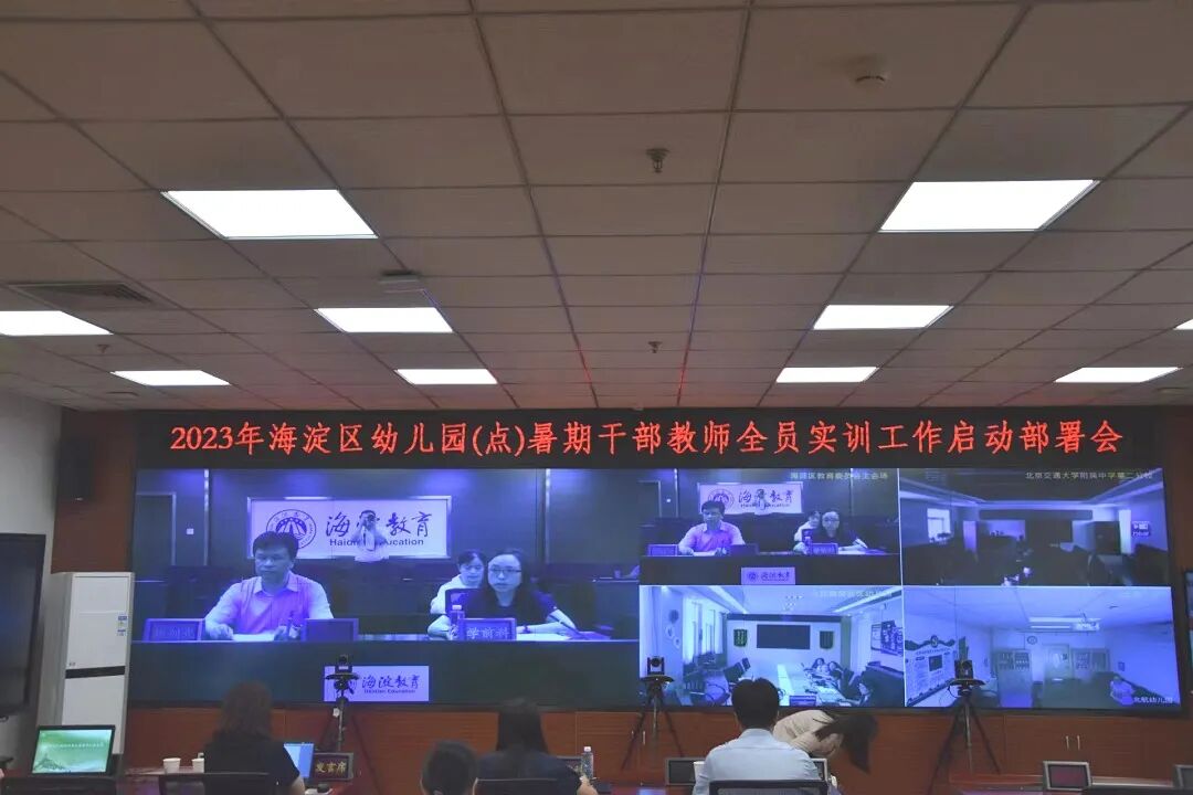 7月6日下午,海淀区教委学前科组织召开2023年海淀区幼儿园(点)暑期干部教师全员实训工作启动部署会,区教委副主任胡剑光对学前学段的实训方案进行解读,要求各幼儿园高度重视,坚持问题导向和需求导向,围绕师德师风建设、规范管理、家园社共育等,做好实训工作,落实好市区园三级实训任务,形成实训成果。