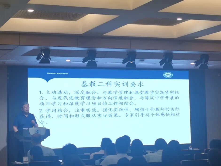 7月7日下午,海淀区教委基教二科组织召开了海淀区中学暑期实训部署动员现场会。基教二科科长唐建东从实训内容、工作分工、工作要求等几方面向全区中学教学干部系统布置了区级、校级两个层面的实训任务。区委教工委副书记史怀远要求将暑期实训工作作为提升立德树人、全面育人能力的重要契机,发挥好行政统筹、教研支撑、科研引领、学校落实的工作机制,凝心聚力,密切合作,形成有序运转的实训工作链条。