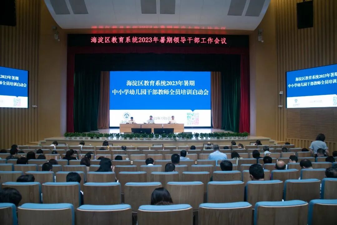 海淀区教育两委于7月5日上午召开了全区书记、校长、园长会,启动全区暑期实训工作。区委教工委书记王方和区委教工委副书记、区教委主任杜荣贞在会上做部署和动员,宣布海淀区暑期实训工作专班成员构成,提出海淀区暑期干部教师全员实训的原则、思路和组织方式,委托区教科院制定区级实训方案,要求教委分管领导分别召开各学段工作部署会,分学段制定研训方案,具体部署和动员。学区、学校全员参加,一校一策,制定好各集团和各学校的实训方案,并组织实施。