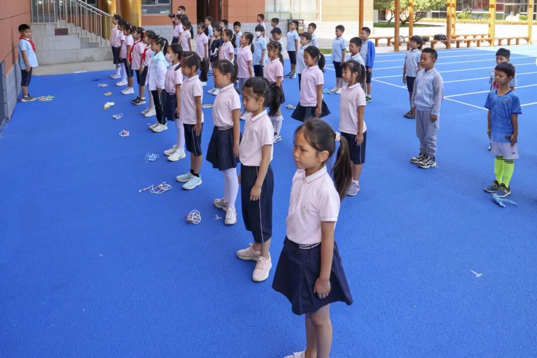 这次跳绳我们给学生准备三个档次——短一点的、中长一点的和长一点的,学生可以根据身高自己选择;我们也根据家长和学生的需求,同意跳绳项目可以选用自备绳。自备绳有好处,比如对自己的跳绳比较熟悉,更利于水平的发挥,但自备绳也有不利的一面,就是孩子必须要注意携带好自己的跳绳,比如统测时拿着跳绳,还要拿着测试的单子,一定要注意别丢了、别掉了、别忘了,这样心里可能会受影响。其实自己带绳,跟我们准备的跳绳没有太大区别,因为据我们的了解,学校一直比较重视跳绳,学生只要认真练习了,跳绳的成绩都是相当不错的。