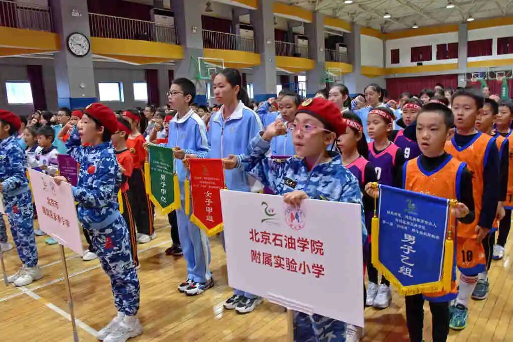 10月27日,北师大二附中海淀学校的体育馆内不时传出热烈的加油呐喊声,这是北京市海淀区西三旗学区首届“兴海杯”脚斗娃校级联赛正在举行。