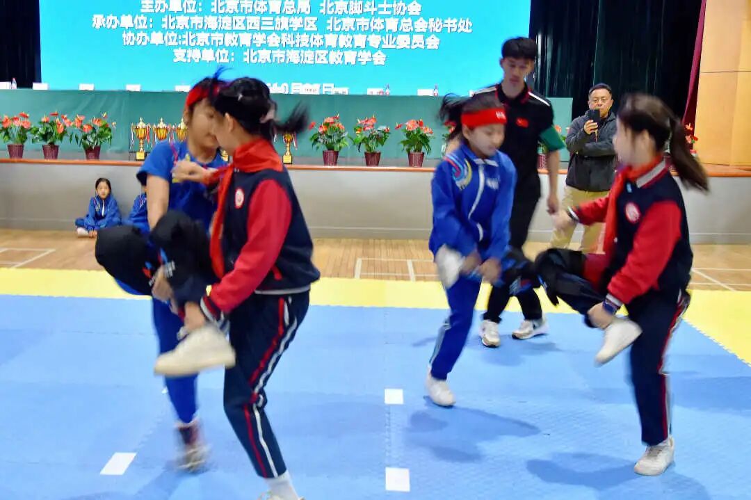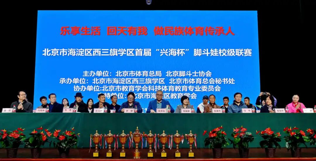 此次联赛由北京市体育总局、北京脚斗士协会主办,北京市海淀区西三旗学区、北京市体育总会秘书处承办,北京教育学会科技体育教育专业委员会协办。比赛共吸引了海淀西三旗学区、回龙观地区两地的12所学校同场竞技。同学们在蒙眼单腿站立、团队接力、双人脚斗等多个项目中交流角逐、展示本领。