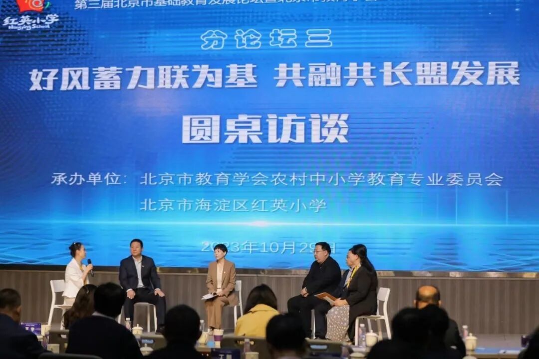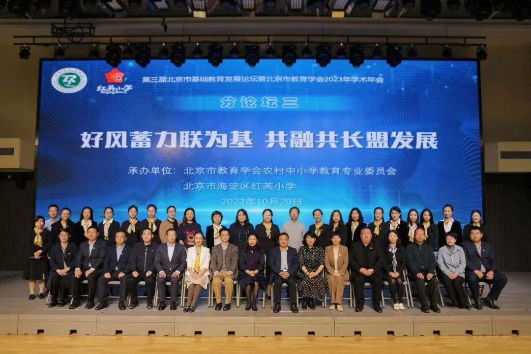 10月29日,由北京市教育学会主办的第三届北京市基础教育发展论坛暨北京市教育学会2023年学术年会开幕。本届论坛以“夯实教育强国基点,探索基础教育创新之路”为主题,围绕2023年北京市基础教育工作要点,通过线上、线下结合的方式展开研讨和交流,展示北京市基础教育优秀教学成果和实践探索。29日下午,作为年会的分论坛之一,由北京市教育学会农村中小学教育专业委员会、海淀区红英小学承办的分论坛三在红英小学六里屯校区开幕。