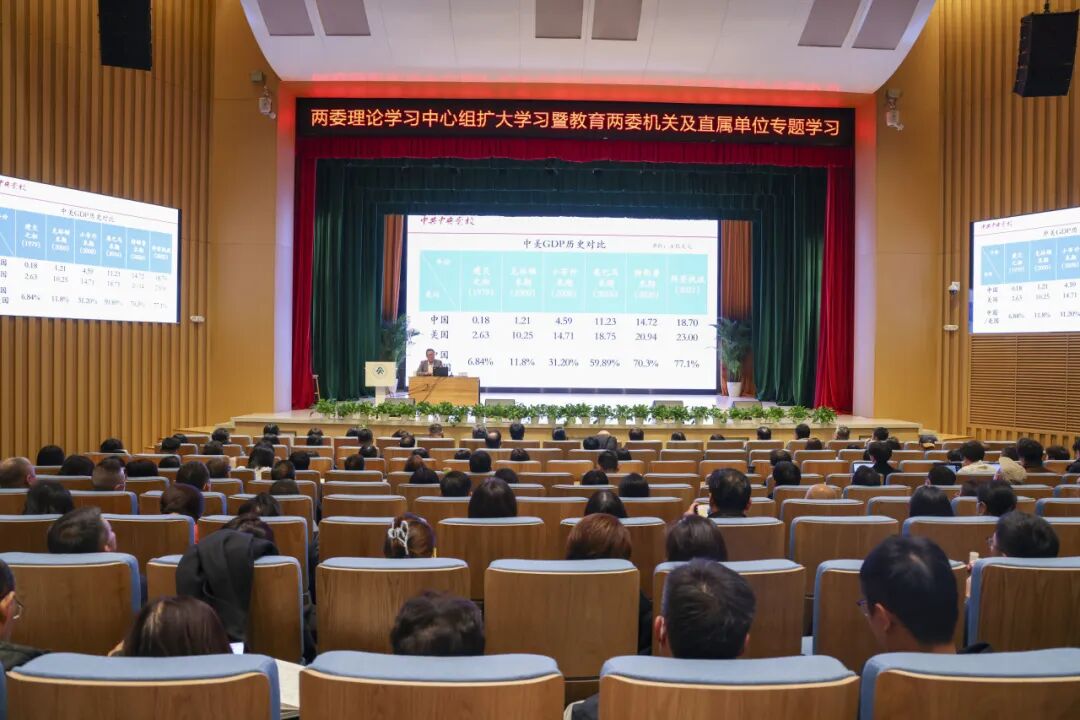 11月20日,海淀区教育两委举行理论学习中心组扩大学习暨教育两委机关及直属单位专题学习活动。两委班子成员、机关科室负责人、直属单位所有党员参加了专题学习,学习由区委教工委副书记史怀远主持。