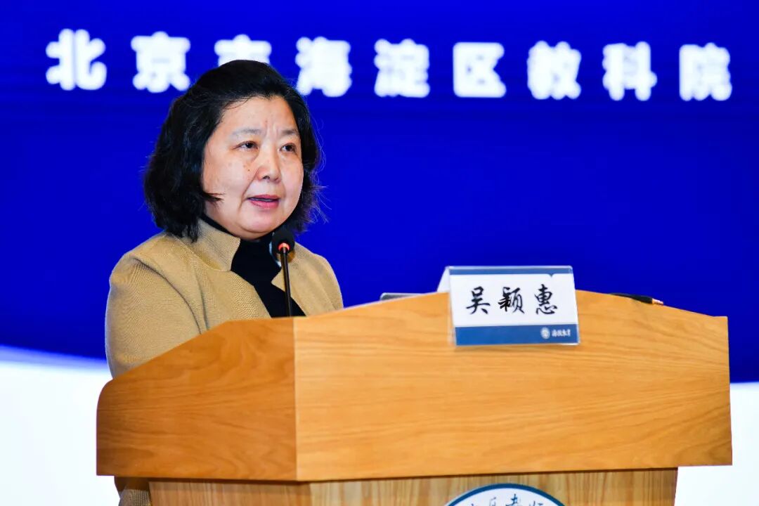 海淀区教科院院长吴颖惠从学生非智力因素和教师专业成长的角度做主题报告,为大家分析了学生学业发展情况,就学生的道德、品行与价值观、学习兴趣、体育锻炼、健康与习惯、劳动水平、阅读水平以及教师工作、学习与负担等问题进行了深入分析,为教师们指出了未来努力的方向。