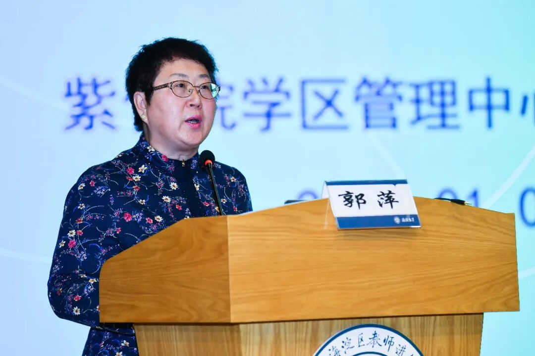 海淀区紫竹院学区主任郭萍向大家介绍了紫竹院学区校家社共育方面锐意创新的实践经验,充分展现了学区管理中心在海淀教育发展中的担当与作为。
