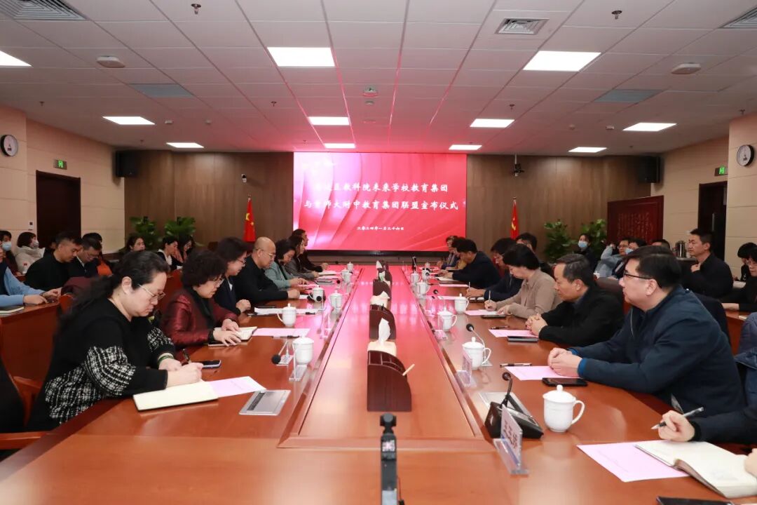 为进一步促进区域教育优质均衡发展,深入推进集团化办学,优化教育布局,经海淀区教育两委决策部署,1月26日,海淀区教科院未来学校教育集团与首都师大附中教育集团正式建立联盟,开启两个集团协同发展新篇章。宣布仪式在海淀区教科院举行,由海淀区委教工委副书记史怀远主持。
