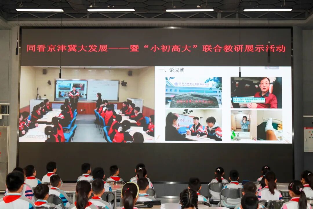 在跨学段主题式研究的思政课堂中,来自京津冀三地四校的“小初高大”四个学段的师生,围绕“协同的力量《同看京津冀大发展》”这一主题,分别为大家带来四节线上思政课。