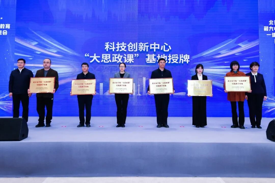 为推动北京市“大思政课”综合改革与国际科技创新中心建设紧密结合,市教育两委、市科委中关村管委会,将启动北京国际科技创新中心建设“大思政课”,推出“‘打卡’科创,触碰未来”等8项行动。同时将在一批科技场馆、科创类企业建设实践教学基地,为学生参与科创“大思政课”提供有力支撑。活动中,中国科学技术馆副馆长齐欣、国家自然博物馆党委书记万士林、北京科学中心副主任霍利民、光科技馆副馆长王秀燕、朝阳园管委会大数据信息中心主任李京、中国科学院与“两弹一星”纪念馆馆长李莉作为实践基地单位代表接受颁牌。
